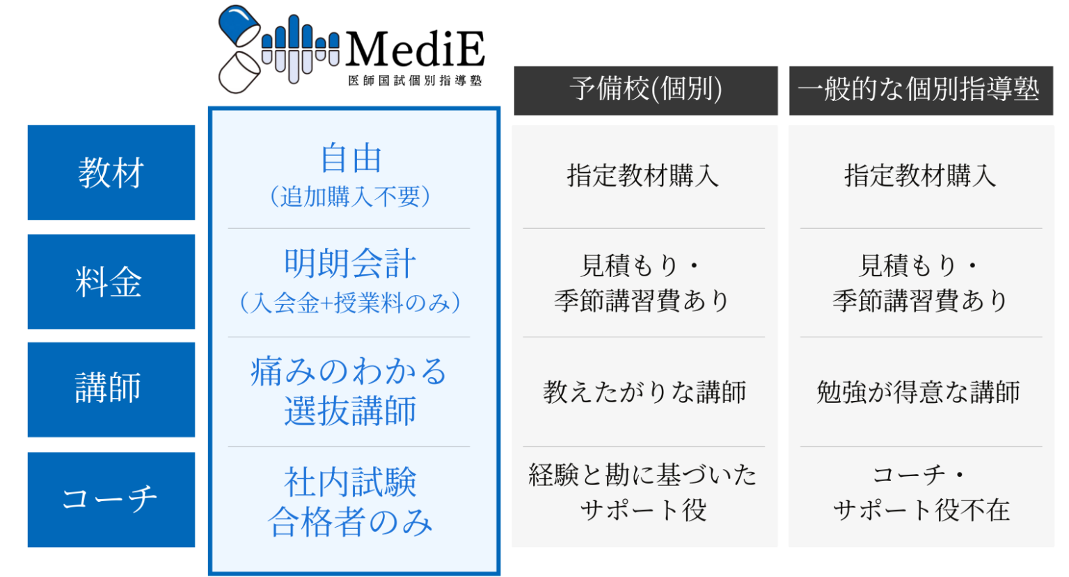 MediEは、映像授業だけでは補いきれないメンタル面やモチベーションの維持、そして個別のケアに注力しています。