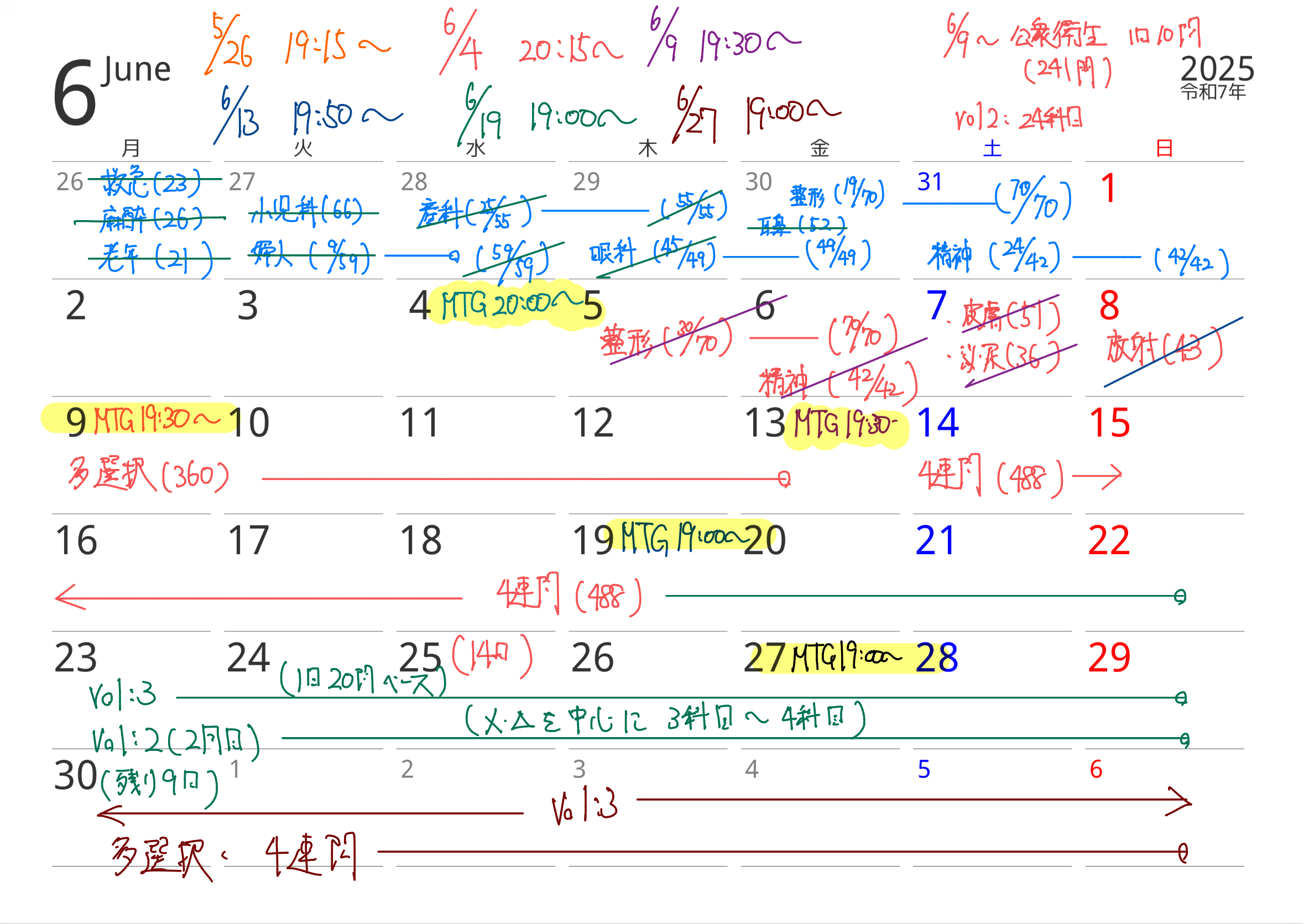 - CBT QBのvol2の臨床の範囲の問題演習を1日60問程のペースで進める